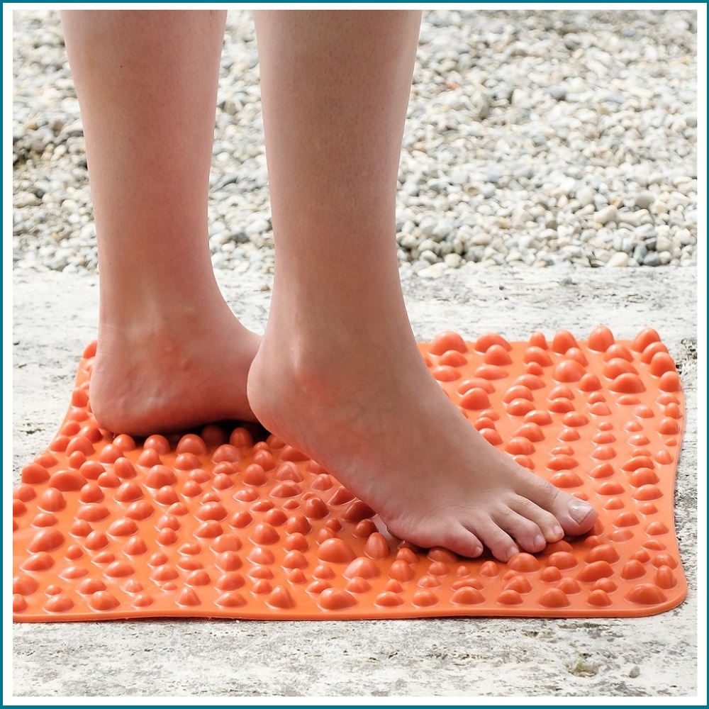 Regelmäßiges Treten/Laufen auf stimulierenden Matten löst die Triggerpunkte unter den Füßen auf, was einen Einfluss auf die ganze Körper-Haltung hat.